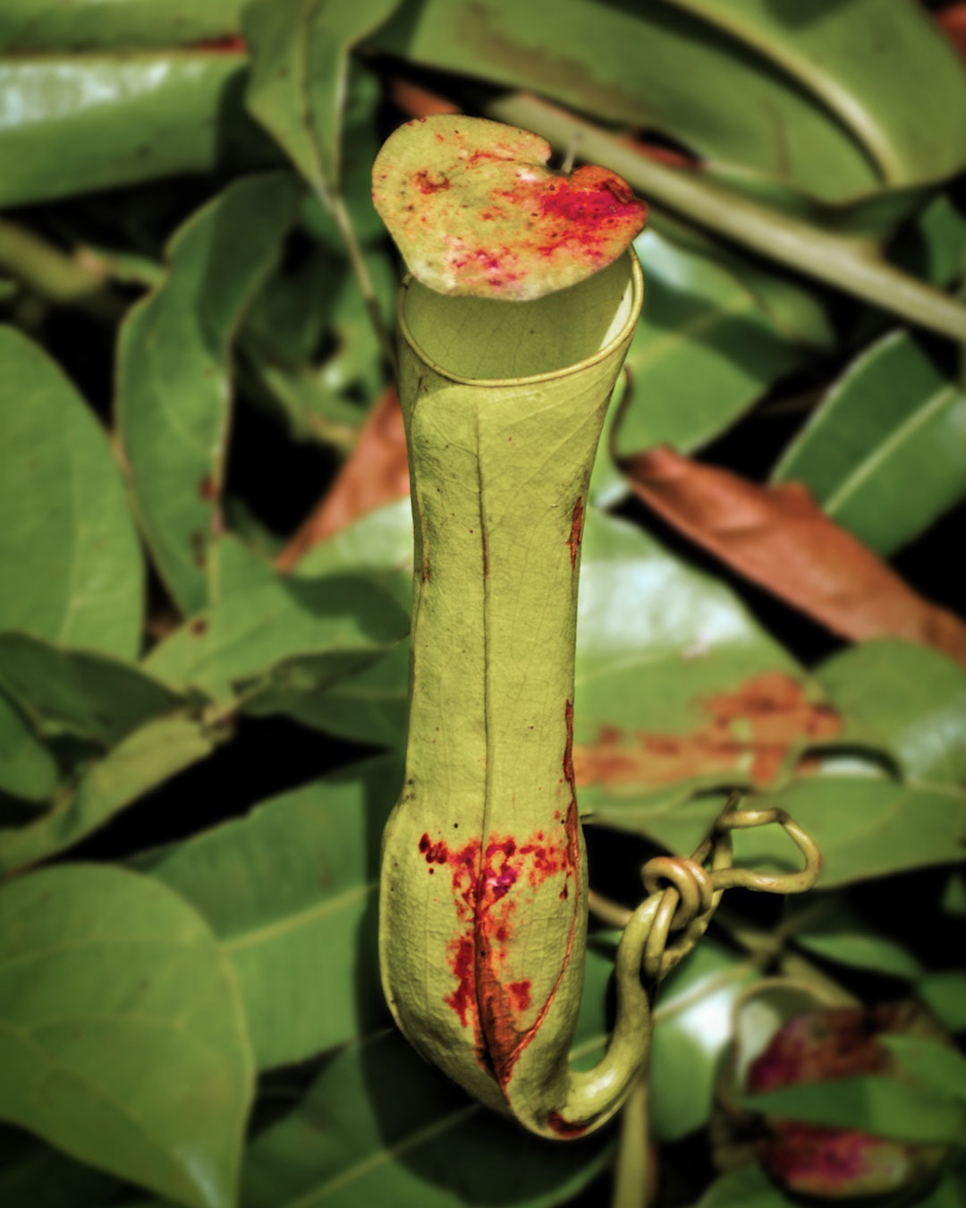 Kantongnya ramping, berwarna hijau atau kemerahan, dengan pinggiran licin yang mudah membuat serangga terpeleset dan jatuh ke cairan pencerna di dalamnya. Spesies ini menunjukkan bagaimana tumbuhan karnivor mampu bertahan di lingkungan yang penuh tantangan, sekaligus tetap berkontribusi pada keanekaragaman hayati setempat.
